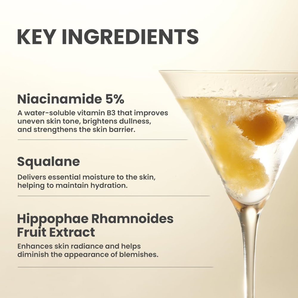 Niacinamide (5%) – Brightens and evens skin tone while reducing pigmentation.